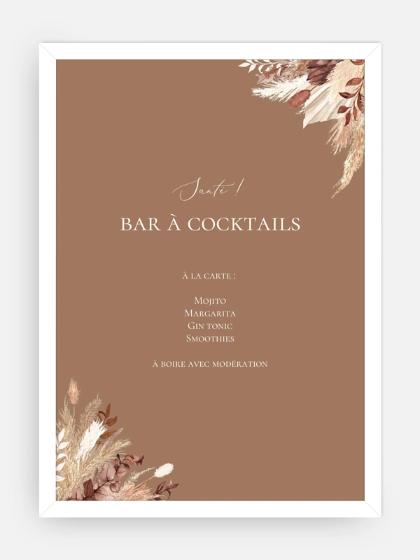 Indiquez à vos invités où se situe le cocktail ou le vin d'honneur grâce à l'affiche cocktail "Bohemian Bouquet".