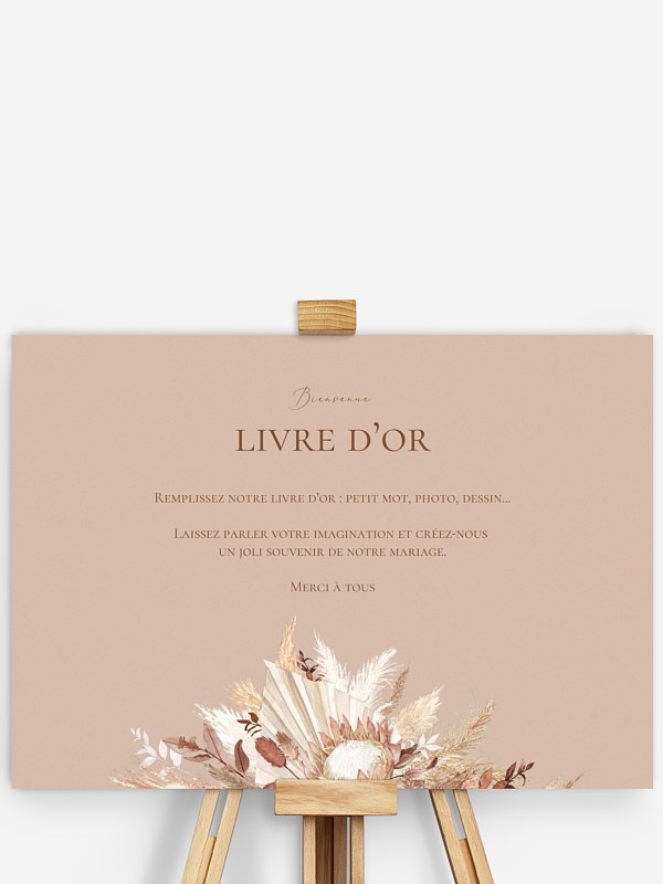 Indiquez à vos invités où se situe votre livre d'or grâce à l'affiche livre d'or mariage "Bohemian Bouquet".