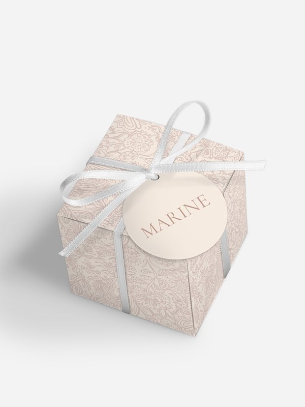 Glissez quelques douceurs dans cette boîte à dragées mariage "Histoire d’amour" et personnalisez-la au nom de vos invités. Vous pouvez personnaliser ces boîtes avec le nom de vos convives grâce à la petite étiquette accrochée au ruban. Pour cela, choisissez la quantité en fonction du nombre d’invités et renseignez tous les noms dans notre outil de personnalisation. NB: La boite peut contenir un maximum de 30 dragées.