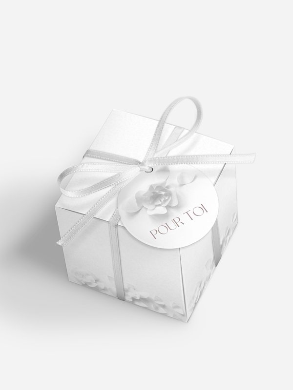 Glissez quelques douceurs dans cette boîte à dragées mariage "Poème sur papier", et offrez-la à vos invités le jour J. Vous pouvez personnaliser la petite étiquette accrochée au ruban dans notre outil de création. Celle-ci sera la même pour toutes les boîtes commandées. Si vous souhaitez avoir une étiquette avec le nom de vos invités, nous vous invitons à choisir une boite à dragées dont le nom est “boite à dragées personnalisable". NB: La boite peut contenir un maximum de 30 dragées.