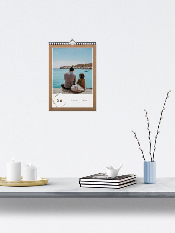Transformez vos souvenirs en un calendrier personnalisé alliant élégance naturelle et moments forts de votre année. Ce calendrier photo mural, au design authentique, est idéal pour offrir un cadeau unique ou célébrer vos instants précieux mois après mois.