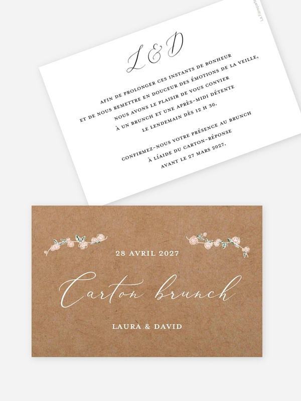 La carte brunch “Romantic Love” est à glisser dans votre faire-part mariage et vous permet d’inviter vos proches au brunch des mariés, le lendemain du mariage.