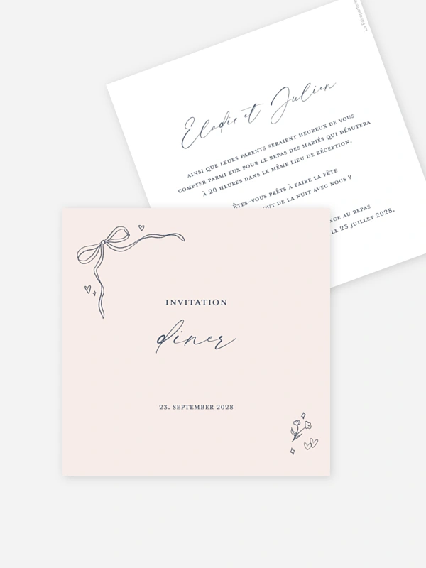 Le carton d'invitation "Couple ailé" est parfaitement assorti au faire-part mariage et vous permet d'écrire des informations supplémentaires.