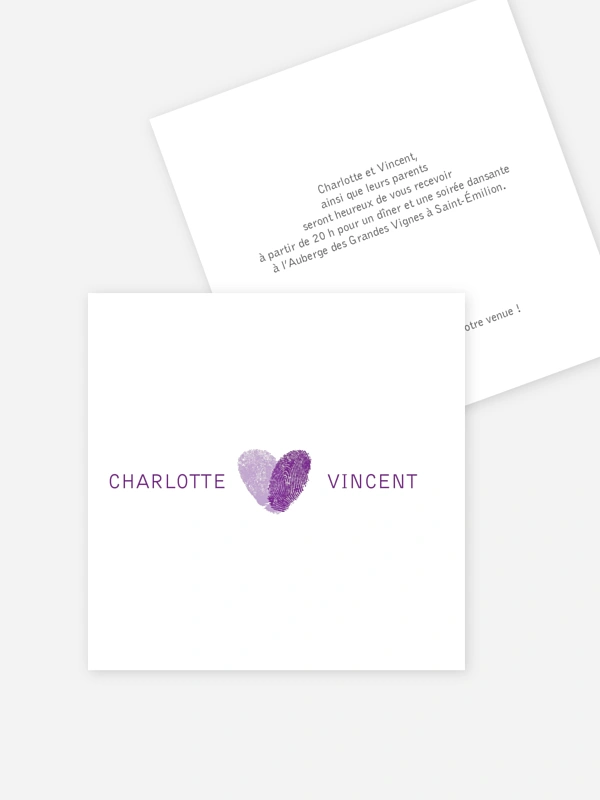 Carton d'invitation Empreinte du coeur