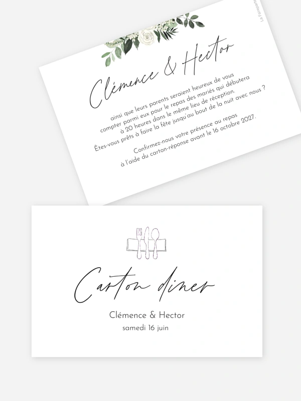 Le carton d'invitation "Escapade Greenery" est parfaitement assorti au faire-part mariage et vous permet d'écrire des informations supplémentaires.