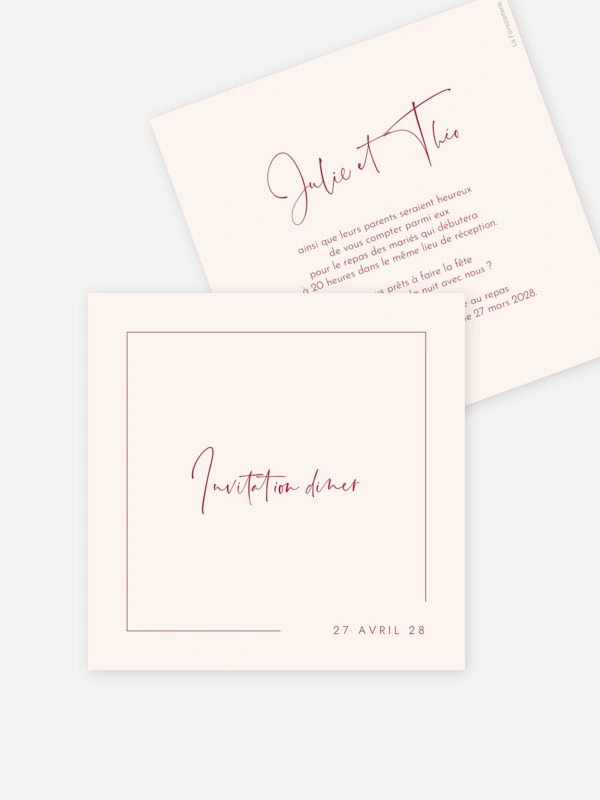Le carton d'invitation "La couleur de l'amour" est parfaitement assorti au faire-part mariage et vous permet d'écrire des informations supplémentaires.