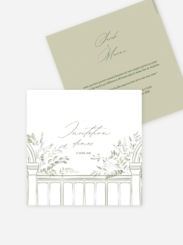 Le carton d'invitation "Porte botanique" est parfaitement assorti au faire-part mariage et vous permet d'écrire des informations supplémentaires.
