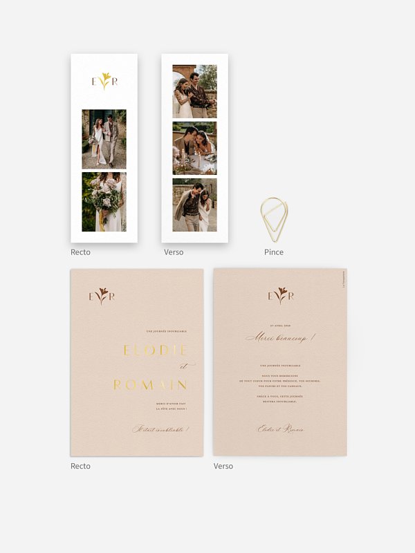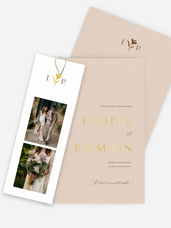 Ajoutez vos plus belles photos et dites merci à vos invités d'avoir rendu cette journée inoubliable avec la carte de remerciement "Élégant Monogramme".