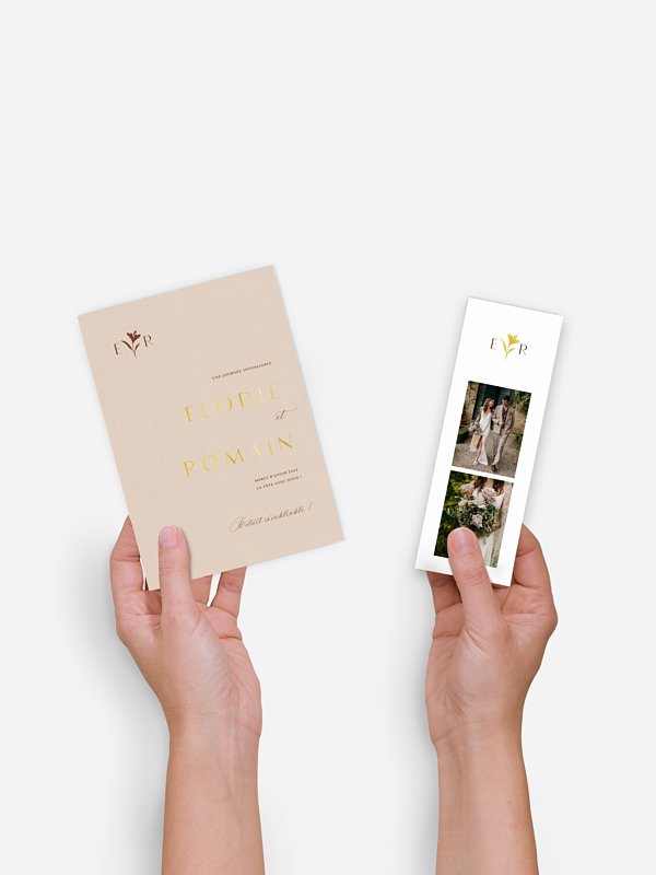 - Pages intérieures : 1 double-page pour les marié.e.s, 2 doubles-pages différentes pour les invités.