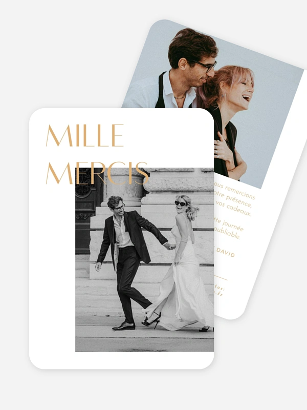 Exprimez votre gratitude avec élégance grâce à la carte de remerciement "Épure Moderne". Son style épuré et cinématographique met magnifiquement en valeur vos plus beaux souvenirs pour remercier vos proches après votre grand jour. Profitez de notre service de création simple et de nos papiers de haute qualité pour envoyer un message qui vient du cœur. Commandez dès maintenant votre carte d'échantillon gratuite pour valider votre personnalisation en toute sérénité.