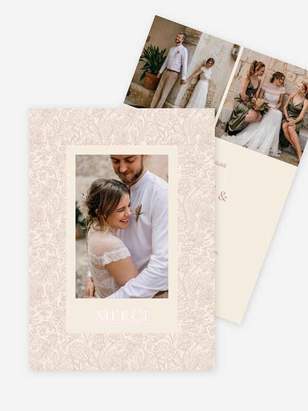 Ajoutez vos plus belles photos et dites merci à vos invités d'avoir rendu cette journée inoubliable avec la carte de remerciement "Histoire d’amour".