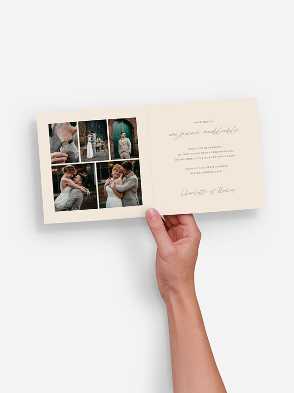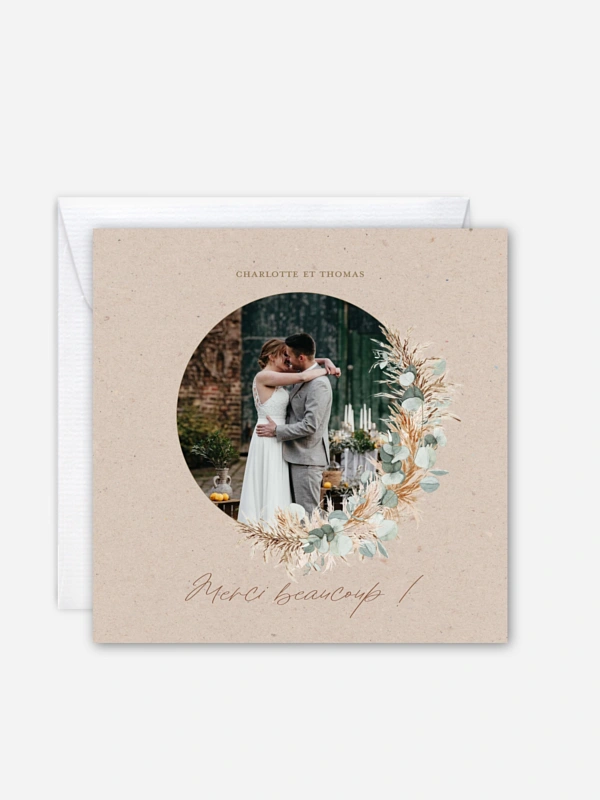 Ajoutez vos plus belles photos et dites merci à vos invités d'avoir rendu cette journée inoubliable avec la carte de remerciement "Pampa champêtre".