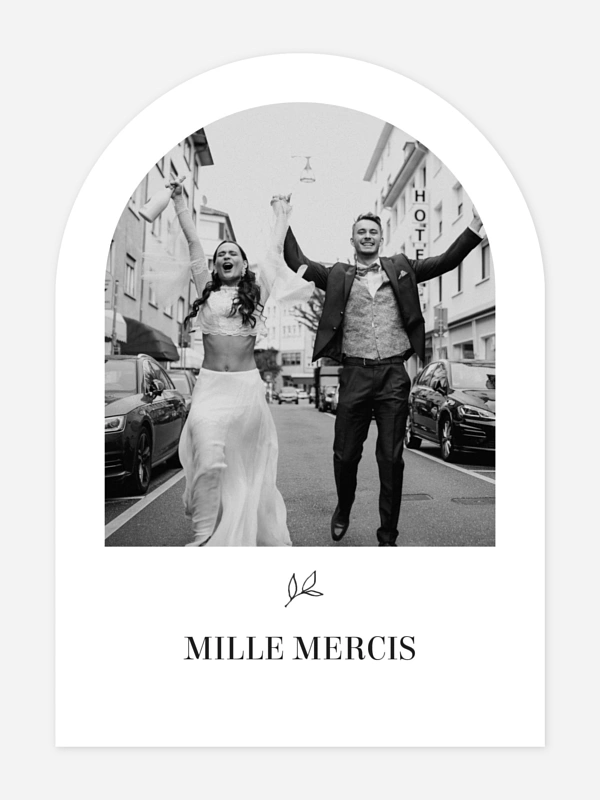 Remerciez vos proches avec naturel grâce à la carte de remerciement mariage "Sous la canopée", un modèle épuré qui laisse toute la place à votre photo préférée. Pour sublimer ce souvenir, nous utilisons des papiers haut de gamme ainsi qu’une impression de grande qualité. Profitez également de notre service de retouche inclus pour une création soignée. Créez votre lot en ligne dès maintenant pour partager ce moment de joie.