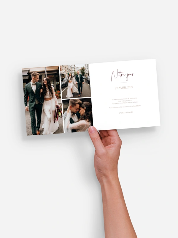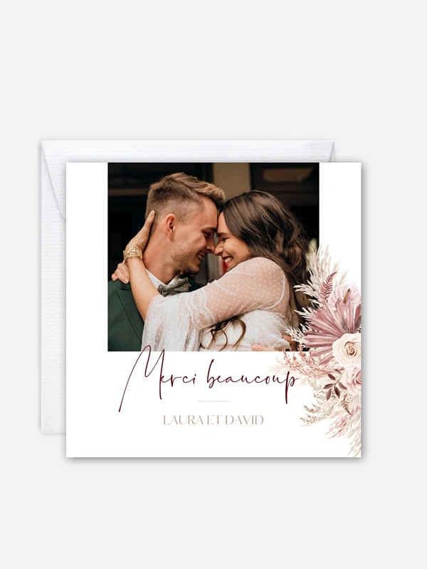 Ajoutez vos plus belles photos et dites merci à vos invités d'avoir rendu cette journée inoubliable avec la carte de remerciement "Terracotta dreams".