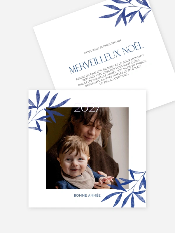 Souhaitez une année pleine de douceur à vos proches avec notre carte de voeux "Brin de laurier", dont l'élégance naturelle souligne vos plus beaux souvenirs. Ce design épuré vous permet de partager votre bonheur avec sincérité et de créer un moment de connexion unique pour débuter l'année. Pour vous garantir un résultat impeccable, nous mettons à votre disposition notre service de retouche et assurons une livraison rapide de vos créations. Personnalisez votre modèle en ligne dès maintenant pour envoyer un message chaleureux à ceux qui vous sont chers.