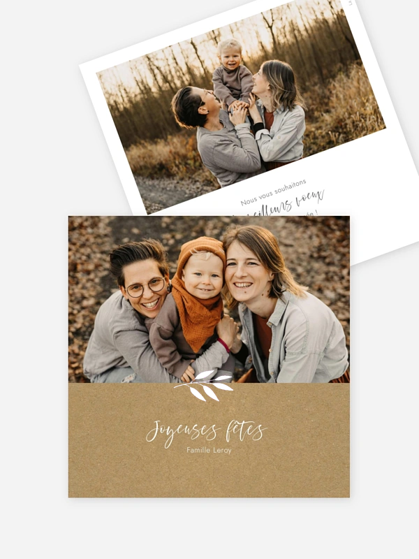 Partagez vos pensées les plus chaleureuses avec la carte de vœux "Constellation dorée", dont le design épuré agrémenté d'un délicat rameau souligne avec poésie vos plus beaux portraits de famille. Ce modèle au style naturel et authentique est parfait pour envoyer un message de bonheur sincère à vos proches lors des fêtes de fin d'année. Pour que vos vœux voyagent avec élégance, nous garantissons une impression de haute qualité sur des papiers haut de gamme rigoureusement sélectionnés. Profitez de notre service de création intuitif pour personnaliser vos textes et vos clichés en toute simplicité. Créez votre lot en ligne dès maintenant pour souhaiter de joyeuses fêtes à tout votre entourage avec une attention qui vient du cœur.