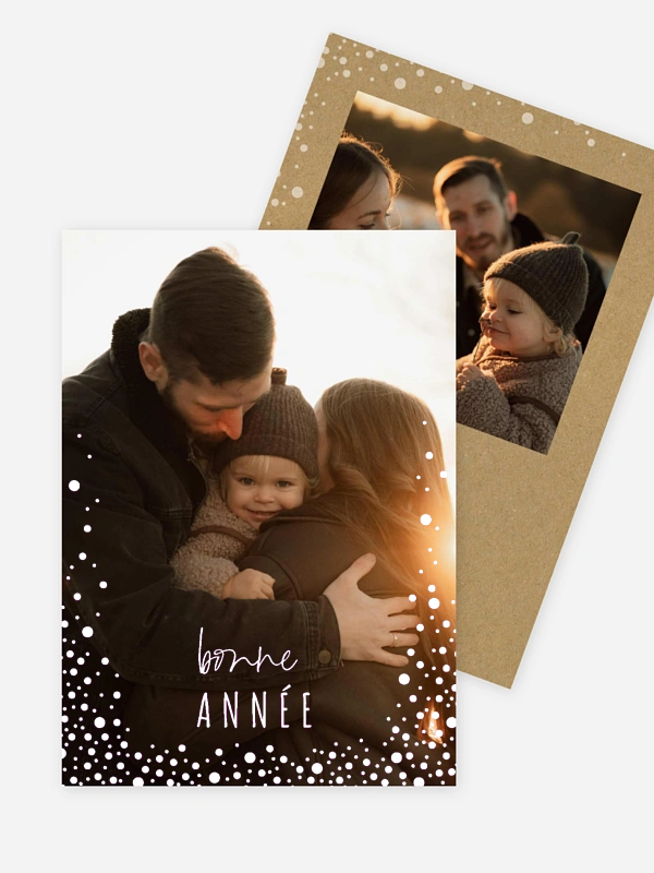 Faites scintiller vos messages de fin d'année avec la carte de vœux "Instants d’hiver", dont le design parsemé de flocons apporte une touche féerique à votre plus belle photo de famille. Ce modèle chaleureux est une invitation à partager la magie de la saison et vos vœux de bonheur les plus sincères avec ceux qui vous sont chers. Pour sublimer ce précieux souvenir, nous garantissons une impression de haute qualité sur des papiers haut de gamme rigoureusement sélectionnés. Profitez de notre service de création intuitif pour personnaliser votre annonce en quelques instants avec beaucoup de cœur. Créez votre lot en ligne dès maintenant pour souhaiter une année lumineuse à tout votre entourage.