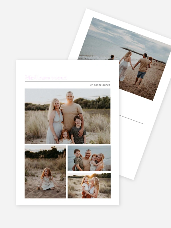 Célébrez le passage à la nouvelle année avec la carte de vœux "Lueurs d’hiver", une création lumineuse qui met à l'honneur vos plus beaux instants de complicité. Ce design élégant vous permet de partager une sélection de vos photos favorites pour envoyer un message authentique et chaleureux à tous ceux qui vous sont chers.