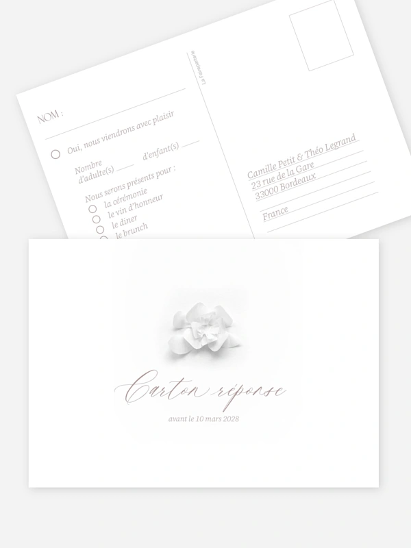 Ce carton réponse mariage "Poème sur papier" est à glisser avec le faire-part. Vos invités pourront répondre de leur présence par ce carton réponse.