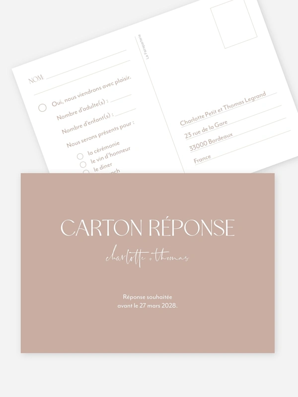 Ce carton réponse mariage "The Big Day" est à glisser avec le faire-part. Vos invités pourront répondre de leur présence par ce carton réponse.