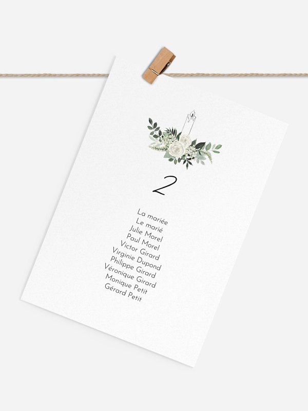 Avec les jolis cartons plan de table mariage "Escapade Greenery", indiquez à vos convives à quelle table ils sont placés. Chaque carte est imprimée à l’identique au recto et au verso. Laissez place à votre imagination pour les mettre en scène.