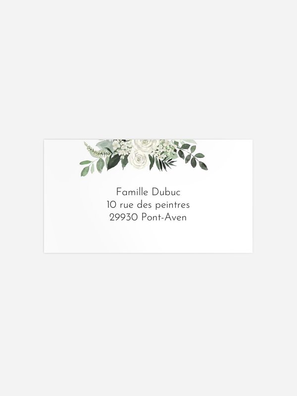 Personnalisez les étiquettes autocollantes adresses mariage "Escapade Greenery" avec les adresses de vos invités puis collez-les sur vos enveloppes.
