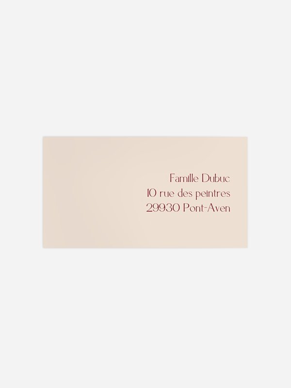 Personnalisez les étiquettes autocollantes adresses mariage "Jour de rêve" avec les adresses de vos invités puis collez-les sur vos enveloppes.