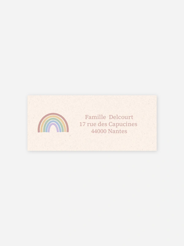 Personnalisez les étiquettes autocollantes baptême "Arc-en-ciel" avec votre adresse puis collez-les sur vos enveloppes.