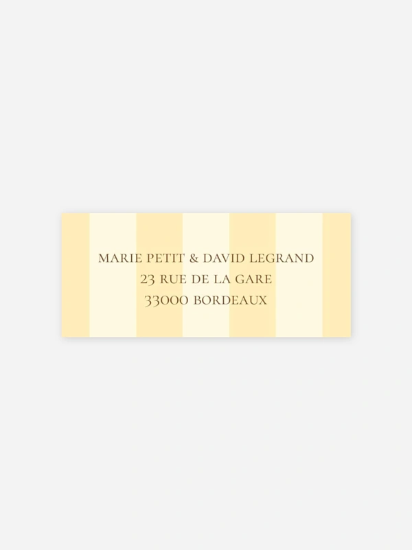 Personnalisez les étiquettes autocollantes mariage "Sicile" avec votre adresse puis collez-les sur vos enveloppes.