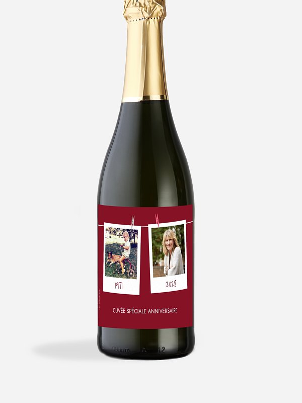 Personnalisez l'étiquette autocollante pour bouteille "Cadre photo en fête". Elle se colle sur les bouteilles de vin, de champagne...