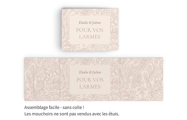 Personnalisez les jolies étuis pour mouchoir "Histoire d’amour" et laissez les émotions de vos convives parler.