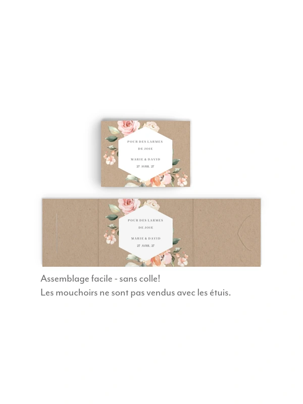 Personnalisez les jolies étuis pour mouchoir "Soft Florals" et laissez les émotions de vos convives parler.
