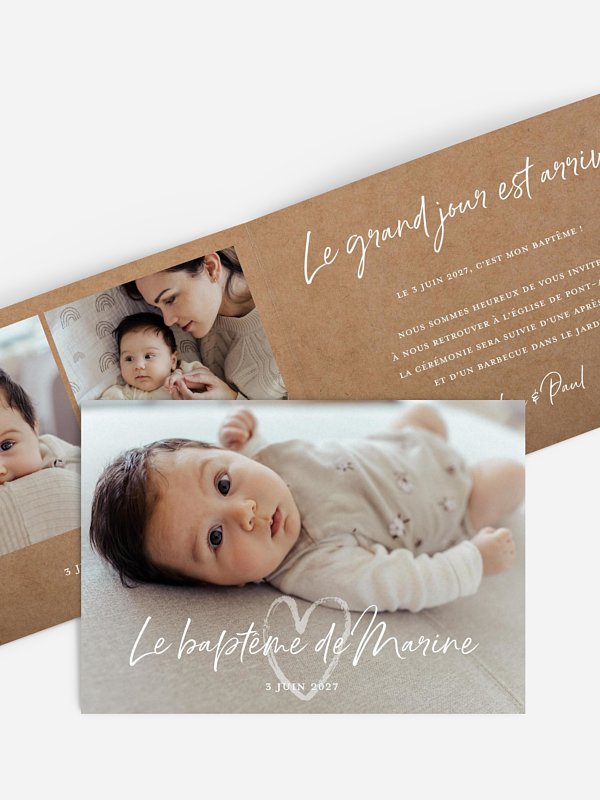 Personnalisez le faire-part baptême "Cocon" pour inviter tous vos proches à la cérémonie de baptême de votre enfant.