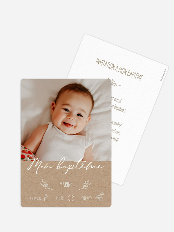 Personnalisez le faire-part baptême "Natural" pour inviter tous vos proches à la cérémonie de baptême de votre enfant.