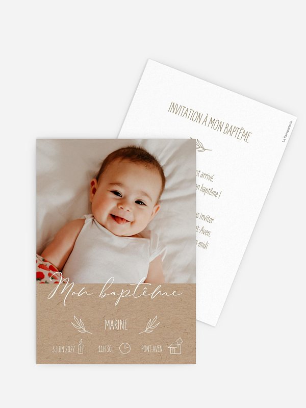 Personnalisez le faire-part baptême "Natural" pour inviter tous vos proches à la cérémonie de baptême de votre enfant.