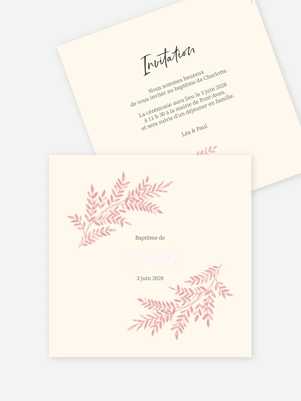 Annoncez une journée inoubliable avec le faire-part de baptême "Tendre refrain", dont les délicates branches illustrées à l’aquarelle apportent une touche de poésie à votre invitation. Ce design épuré et printanier est une magnifique façon de réunir vos proches pour célébrer cette étape importante de la vie de votre enfant. Pour vous assurer un résultat impeccable, nous misons sur une impression de haute qualité sur des papiers haut de gamme rigoureusement sélectionnés. Profitez de notre service de création intuitif pour personnaliser chaque détail et partager votre joie avec tendresse. Créez votre lot en ligne dès maintenant pour inviter votre entourage à partager ce moment de bonheur.