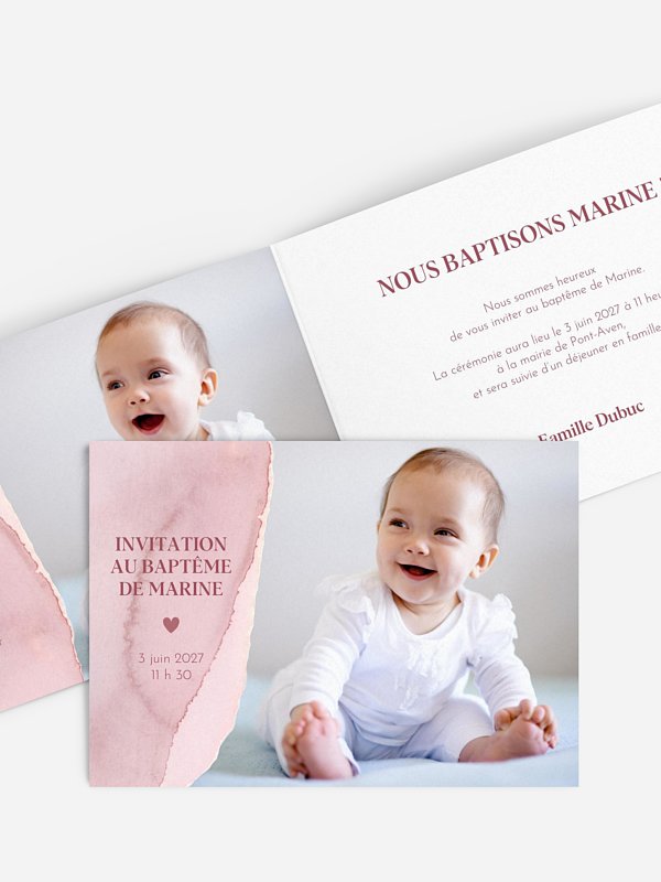 Personnalisez le faire-part baptême "Tracé en aquarelle" pour inviter tous vos proches à la cérémonie de baptême de votre enfant.