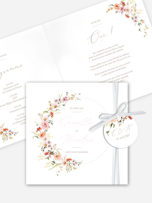 Annoncez à tous vos proches grâce au faire-part mariage "Arche de fleurs" que le grand jour est arrivé. Vous allez enfin vous dire "oui" : un oui pour la vie !!!