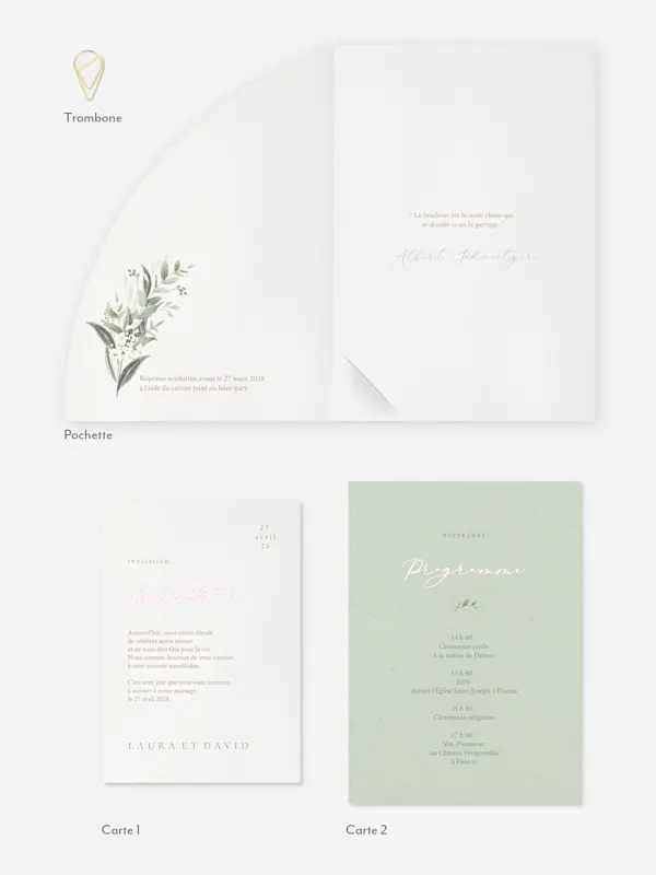 "Les faire-part sont juste magnifiques avec une grande qualité d'impression. Rapidité d’exécution et de livraison. Super, à recommander!" (Gaëlle)