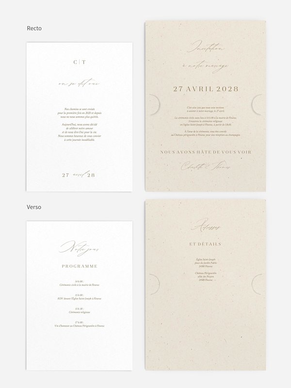 "Les faire-part sont juste magnifiques avec une grande qualité d'impression. Rapidité d’exécution et de livraison. Super, à recommander!" (Gaëlle)