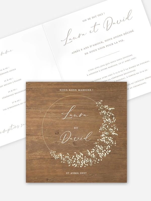 Faire-part de mariage Couronne gypsophile