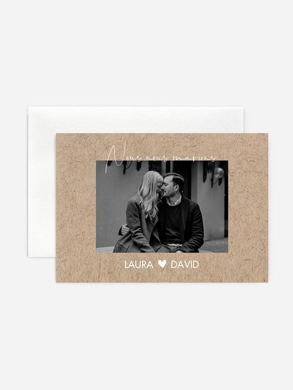 Annoncez à tous vos proches grâce au faire-part mariage « Crafty » que le grand jour est arrivé. Vous allez enfin vous dire "oui" : un oui pour la vie !!! NB : La couleur mentionnée dans la description ou dans la sélection de papier n’est pas représentative du rendu imprimé. Le produit aura un rendu conforme au visuel dans l’outil de personnalisation.