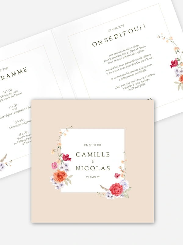 Faire-part de mariage Fleurs de couleur