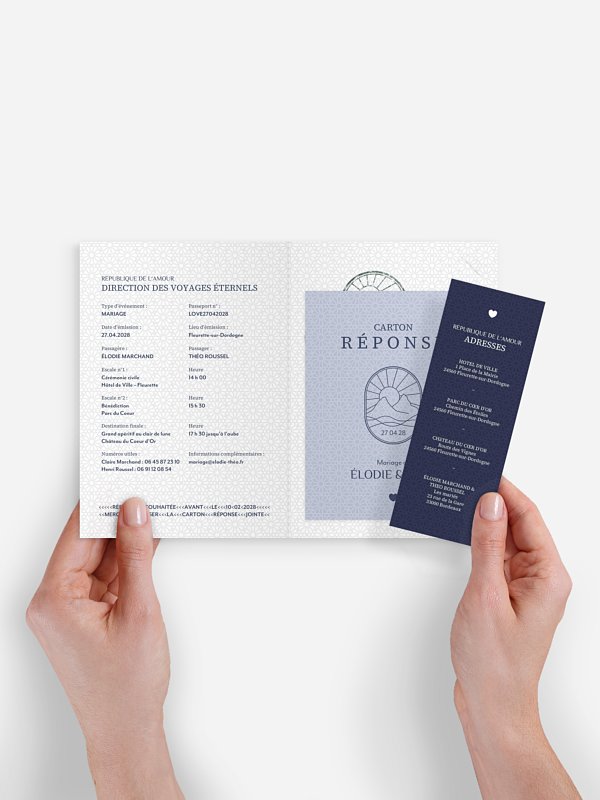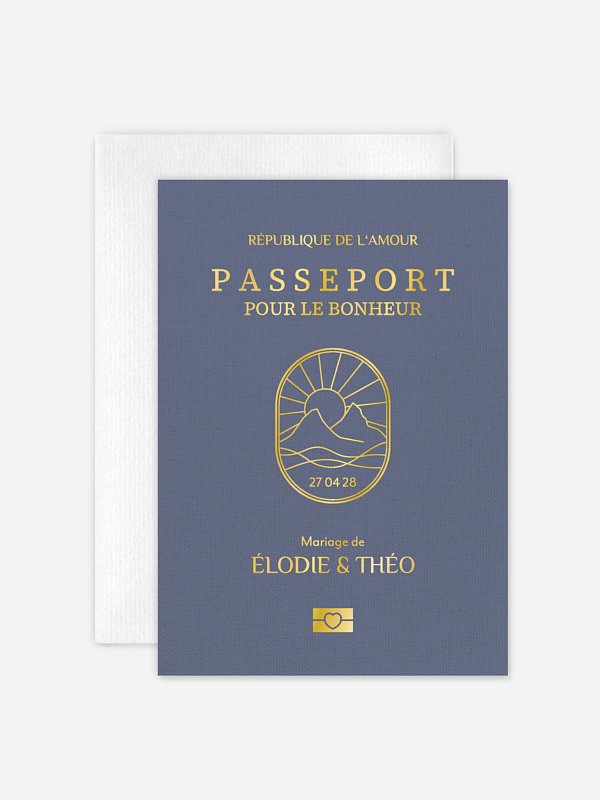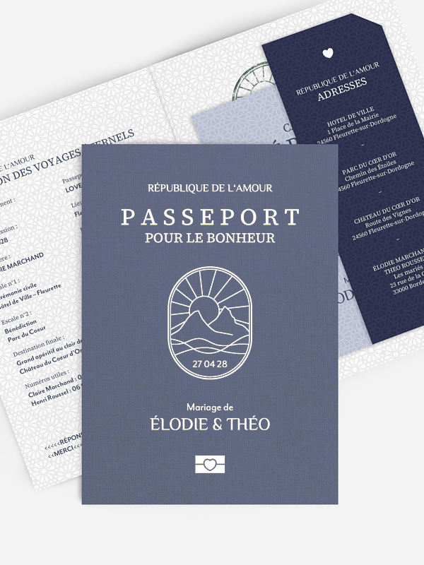 Annoncez à tous vos proches grâce au faire-part mariage "Passeport pour le bonheur" que le grand jour est arrivé. Vous allez enfin vous dire "oui" : un oui pour la vie !!!
