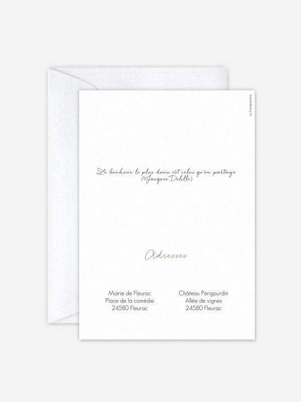 "Les faire-part sont juste magnifiques avec une grande qualité d'impression. Rapidité d’exécution et de livraison. Super, à recommander!" (Gaëlle)