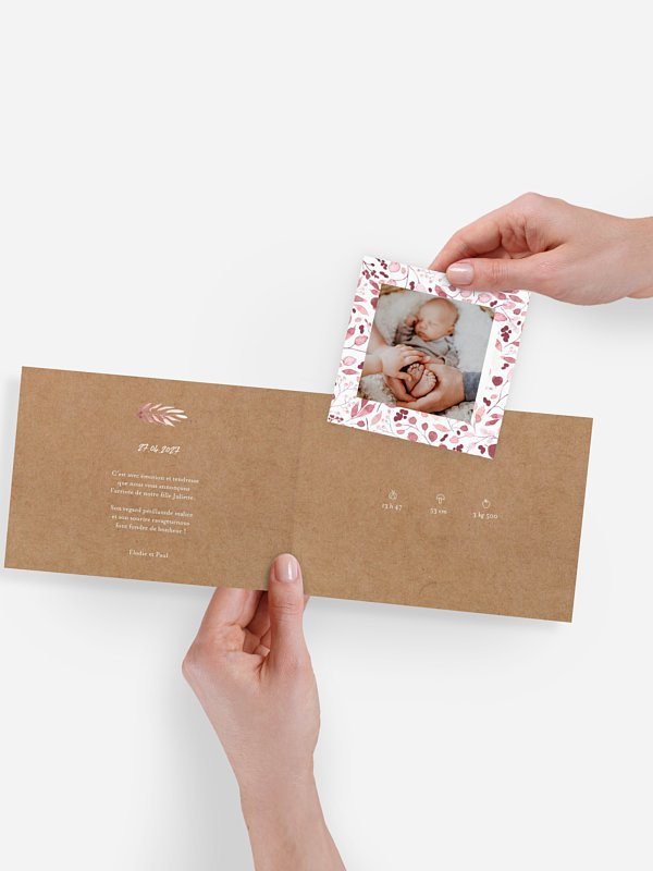 Laissez-vous convaincre par notre qualité et recevez gratuitement 2 échantillons de faire-part naissance !