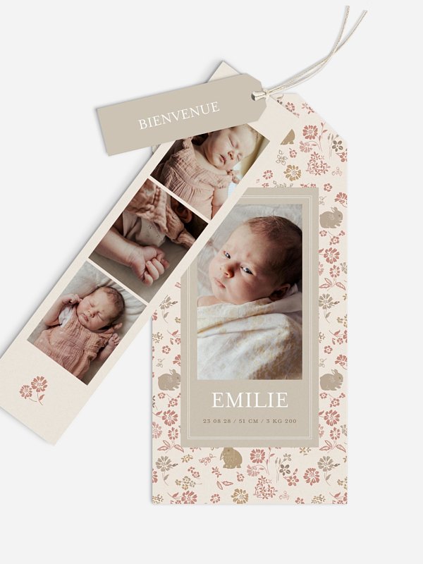Découvrez la collab’ la plus douce de l’année ! Quand les jolis imprimés de Cam Cam Copenhagen, marque danoise de puériculture, rencontrent nos faire-part. Accueillez votre enfant avec la carte de naissance "Augusta 2", un design au charme rétro qui célèbre ce moment précieux. Le motif floral délicat et les teintes douces créent une ambiance chaleureuse, tandis qu'une bande de photos offre un aperçu tendre des premiers instants de votre enfant. C’est une façon originale de créer un faire-part de naissance qui devient un véritable souvenir à conserver pour vous et vos proches. Personnalisez facilement ce modèle avec vos photos préférées grâce à notre outil en ligne, et nous nous assurerons d'une impression soignée pour un résultat touchant.