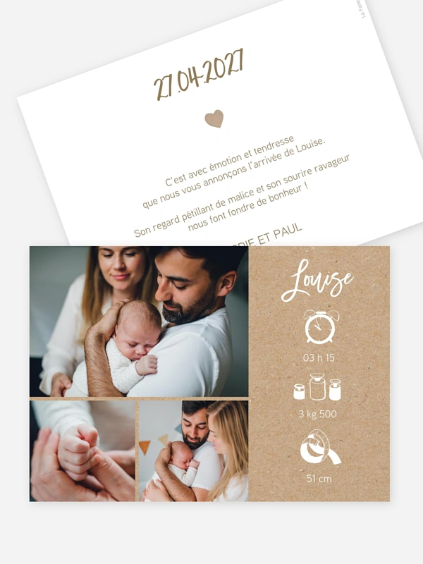 Une jolie carte naissance à personnaliser avec les photos de votre bébé. Doux et classique, le faire-part de naissance "Bienvenue au monde" enchantera votre entourage. NB : La couleur mentionnée dans la description ou dans la sélection de papier n’est pas représentative du rendu imprimé. Le produit aura un rendu conforme au visuel dans l’outil de personnalisation.