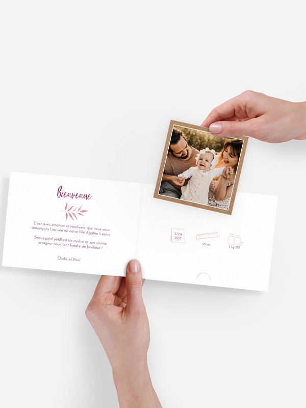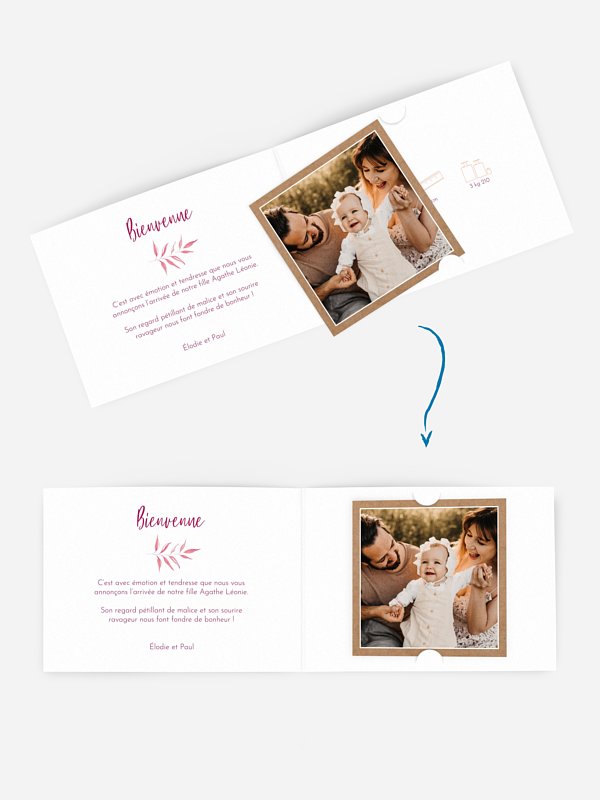 Laissez-vous convaincre par notre qualité et recevez gratuitement 2 échantillons de faire-part naissance !