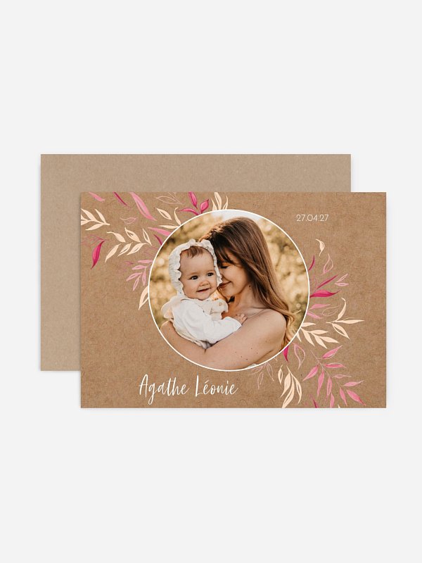 Une jolie carte naissance à personnaliser avec les photos de votre bébé. Douce et classique, le faire-part de naissance "Envolée florale" vous enchantera.
